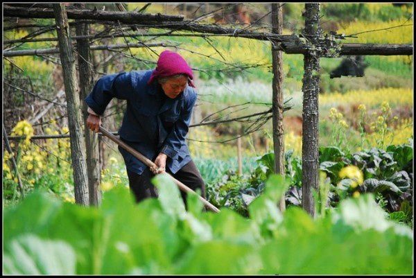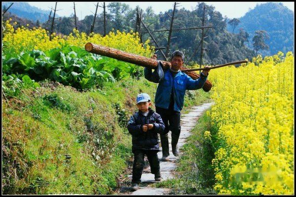 走在乡间的石板路上,两旁是茂密的油菜花田和其他的绿色蔬菜,迎面走来爷孙俩,爷爷扛着木头和锄头走在后面,我们顺便问了一下路,确定这里就是外汪槎,继续往前走,可以通往茶坑