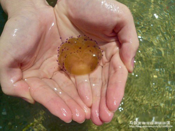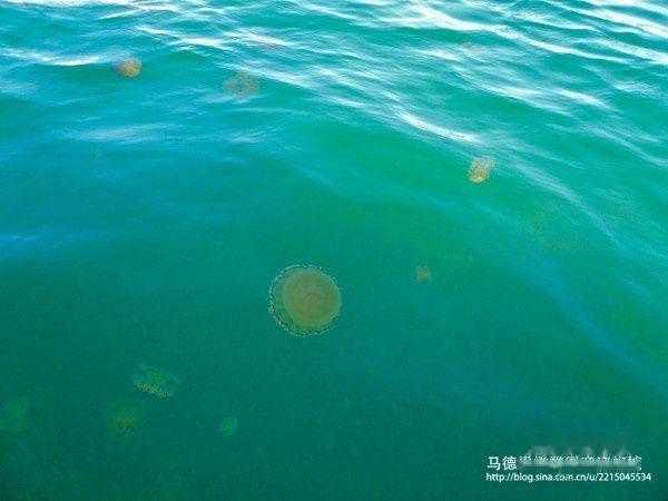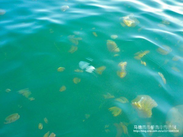 内海的水母,这种棕色的没有毒,可别碰见白色水母哦,据说有毒。