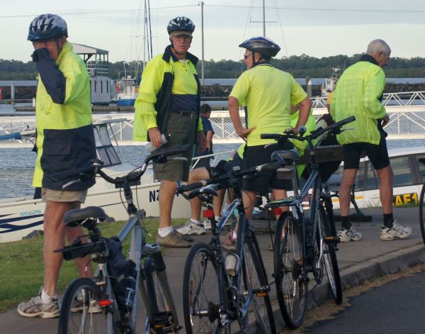 在码头边集合休息的老年自行车队员们。早晨我看见许多统一穿着黄色上衣的老头和紫色上衣的老太太骑着山地车在城市中快速地穿行,一串串欢笑声划破清晨的寂静,给美丽的城市增添活力和色彩。