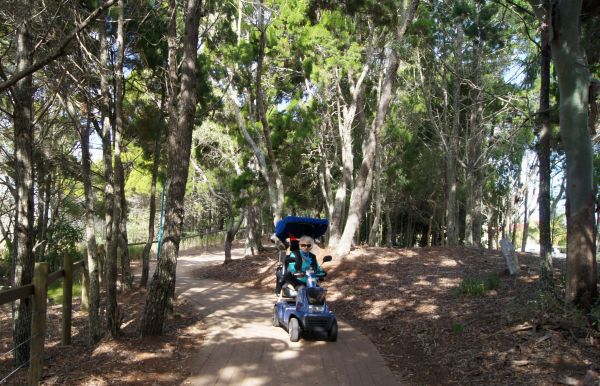 海边的树林里有专供行人步行和骑行的小路,听着海浪声,吹着海风走在林荫下真是惬意无比。