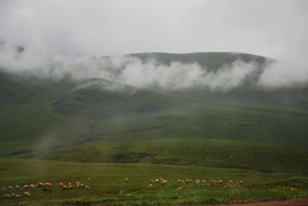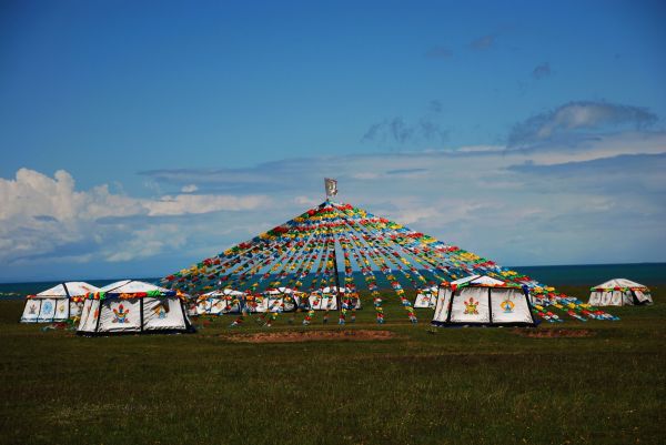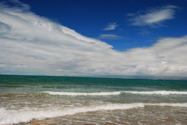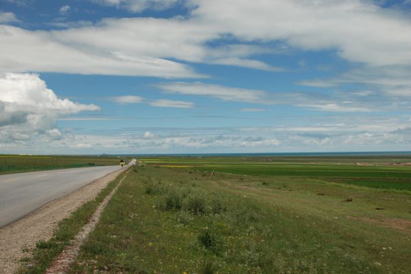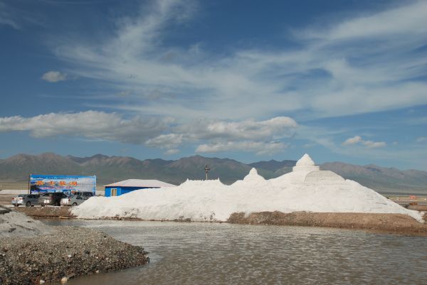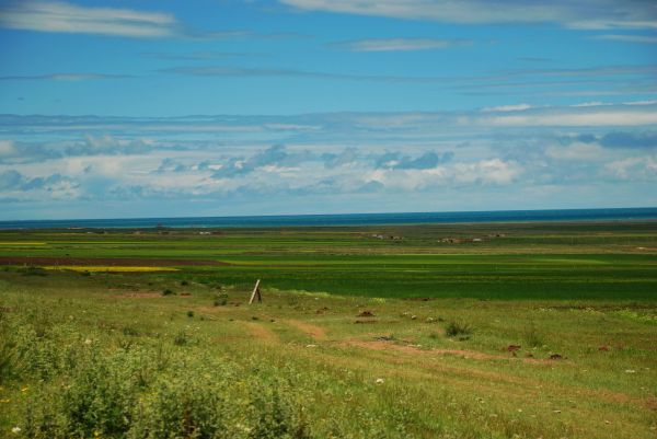 由贵德前往青海湖,天下着小雨,黄河上云雾蒙蒙,犹如仙境,黄河两岸郁郁葱葱,怎是一个美字能描述的了啊,我的相机是拍不出来那种意境的。出了县城,沿前一天来的路线走了一段,照旧经过国家地质公园,没多远便向右驶入扎哈公路,除了我们,偶尔过一两当地车,路况极好。沿途云朵绕着青山,牛羊点缀着草原,色彩鲜艳的帐篷,还有蜿蜒的河流,犹如一幅动态的画卷,就是一个美啊!想停就停,说走就走,就和私家领地一样随意。走出扎哈公路进入了沿湖公路,经过日月山、经过倒淌河,中午在倒淌河镇的一个清真馆要了一个大盘鸡,每人吃了一碗面条,便继续前行。没多久青海湖便出现在眼前,天蓝蓝,水蓝蓝,大片的油菜花竞相盛开,看了就让人兴奋,全都举起了相机,只是油菜花被当地人围了起来,要想接近拍照,只能进去,那一定是要出银子的。在湖边,我们放弃了收门票的二郎剑(因为开饭店的人说湖边景色都差不多,收门票的景区就是多了一些人为的设施),沿着一条小路驶入当地人圈着的范围,连人带车一共交了20元,来到水边。青海湖犹如大海,一望无际,浪花翻腾拍打着湖岸,远处可以看到帆船;它又不同于大海,周边有草原、有油菜花包围,远处还有大山环绕。大美青海湖,名不虚传。在青海湖边玩儿够了,继续开车前行,经过黑马河,目的地是茶卡盐湖。盐湖属于柴达木盆地,它是有历史的,通过文字可以粗略的有所了解。景区的大门有点荒凉,门票50 元,有点小贵。但是我们看到的是水域宽广,银波粼粼。天空白云悠悠,远处苍山峥嵘,蓝天、白云、雪山映入湖中,如诗如画。还有用盐堆雕刻的巨大塑像,小火车可以带着游客更大范围的参观,处漫步湖上,犹如进入盐的世界,难怪被国家旅游地理杂志评为“人一生必去的55个地方”之一呢,真的值得一去。游完茶卡盐湖原路返回黑马河镇,选择明珠宾馆住下并在他家吃的晚饭,叫做宾馆,其实就是客栈,条件还可以,干干净净,能够洗澡,标准间120元。