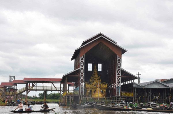 我们随便挑了几处看看,湖周围的居民将房子建在水中,后面也有陆路,只不过很绕道。几乎每户都有几艘小型手划船便于出入,带动力的大船用于载客和货运。水上人家,以湖为居所,并在水上开辟出菜园子,也解决了蔬菜问题,感觉是个鱼米之乡,很富饶的村镇。由于旅游观光区都是用美金交易,折算了一下还是觉得很贵,什么也没买,感到挺对不起老伯的,其他船的客人手都撑满了,而我们空着去空着来,谁叫我们收入的不是美元欧元呢?只好对不住了,老伯也没有表示出不满,一直陪我们玩遍了景点返回。我们的下一站-仰光,车订在了傍晚5:00。