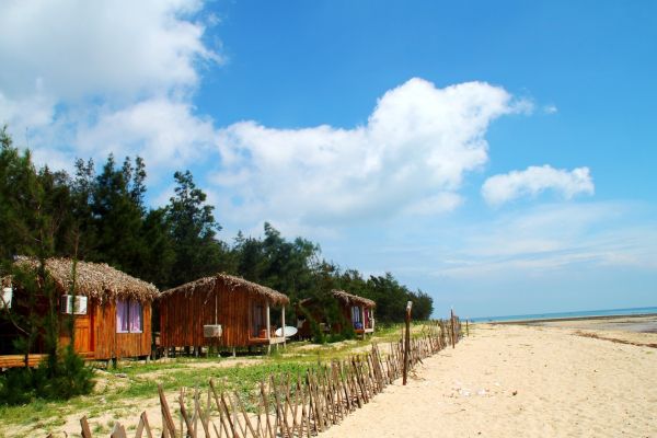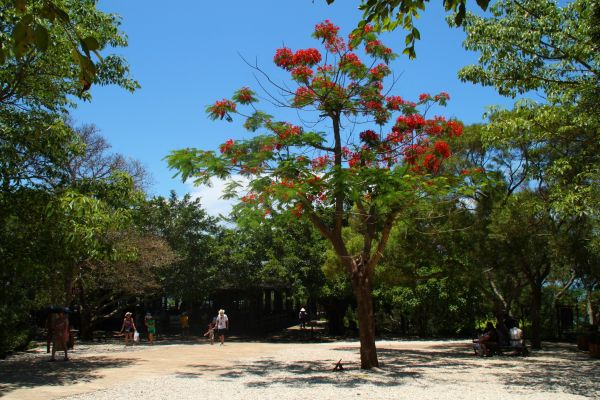 一路沿着沙滩向西(我想应该是),那边潮水没有涨得那么厉害,可以走走看看。我看到有露营的帐篷,相信是可以租给游客的。我是走累了,就在沙滩上的珊瑚骨头堆上躺了一会儿。反正太阳已经不厉害了,躺在上面也不觉得咯人,拿着草帽把脸一遮,感觉很舒服。