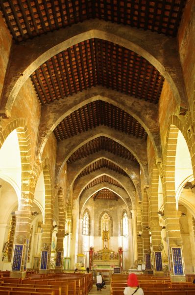 不知道什么年代的,也没有做什么功课去特意了解。只是这幢建筑还蛮有风霜雨雪冲刷的感觉,蛮有历史感的。教堂里也没那么金碧辉煌,不大,转一圈也不过几分钟。喜欢拍照的朋友可能会逗留的时间久点,在教堂里面拍一定要有三脚架。教堂外面卖的绿豆汤很好喝,在闷热的夏天非常解暑。