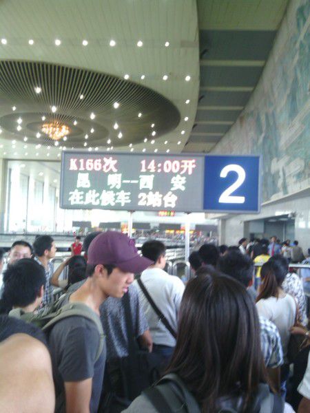 暑假里,北上的列车很紧张。从成都出发没有直达敦煌的列车,离敦煌最近是嘉峪关或柳园,售票点都没有坐票,好象是在考验我们的耐心和决心。最后在网上购买了12号成都到宝鸡的无坐票和宝鸡到兰州的硬坐票,先到兰州再说。