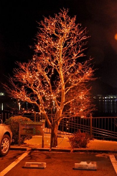 晚上湖边散步能够看到很多美丽的事物,这棵树是其中之一