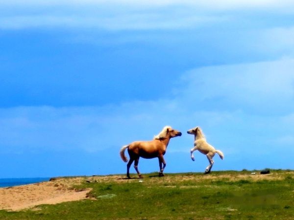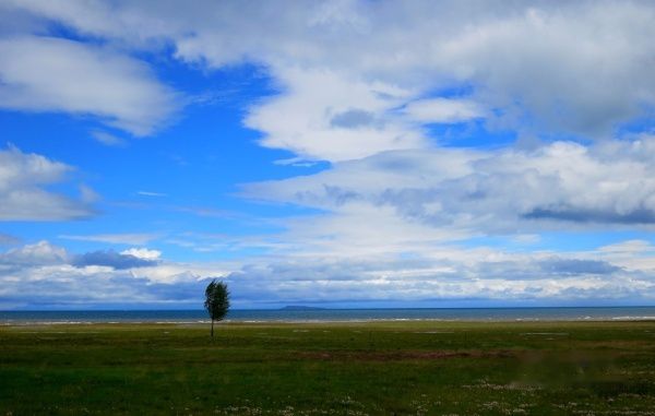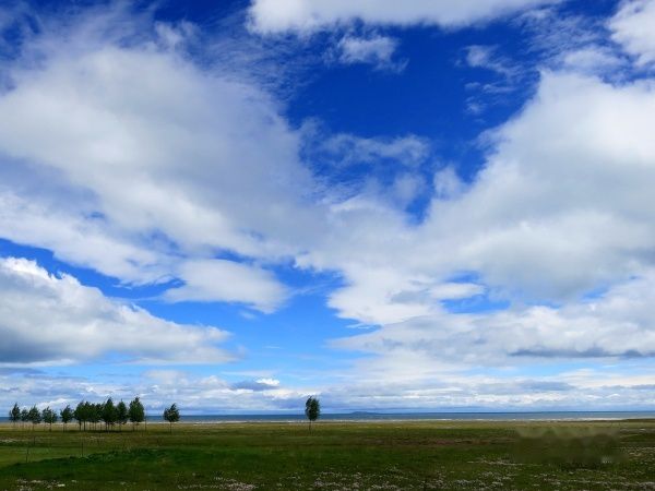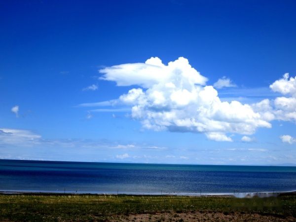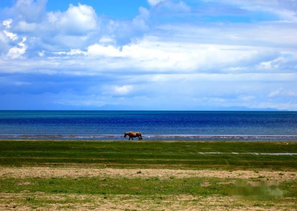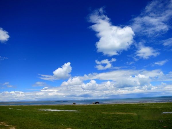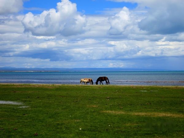 导游亦暗自着急。出日月山,雨雾渐薄,临湖,日渐晴朗。