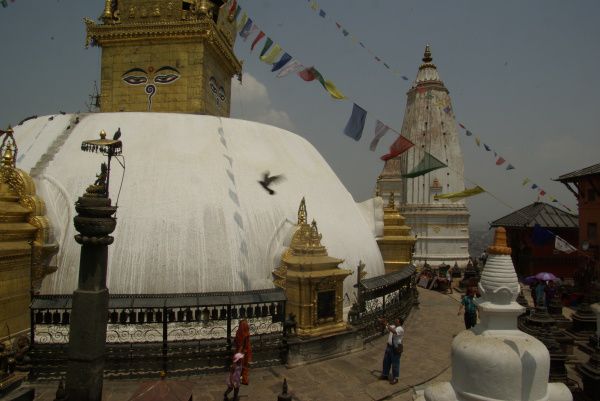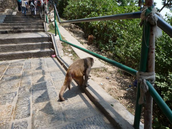 参观了博达哈佛塔,又去了苏瓦扬布佛塔,《SWAYAMBHUNATH>又称“猴庙”。门票200卢比。