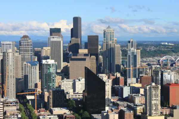 太空针(Space Needle)是西雅图的地标建筑,位于市中心,是为1962年世界博览会而设计建造的,塔高180公尺。从远处看太空针犹如一个巨型飞碟一样悬在空中,登上太空针,可以360度俯瞰西雅图全貌。来到西雅图一定要登上太空针,你会被西雅图独特的迷人风光所折服的。我们是6月23日下午7点左右登上太空针的,那天开始下着雨,到了下午5点多的时候天才开始放晴,天空湛蓝如洗,阳光灿烂耀眼,记得搭乘电梯快速上升的时候,当所有人都毫无准备的时候,窗外迷人的风景迎面扑来的时候,所有人都情不自禁的惊呼起来,太美了,实在是太美了。大家迫不及待的冲到观景台去,举起相机,谋杀了不少“菲林”。居高临下欣赏西雅图,湛蓝的天空,湛蓝的海湾,白色的帆船和游艇,远处的雷尼雪山,这一刻我更加深深的领略到西雅图独特魅力。