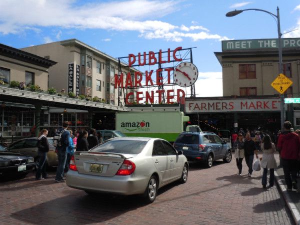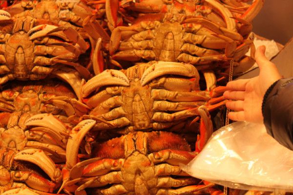 派克市场(Pike Public Market)是历史悠久的农贸市场,这里是西雅图著名旅游景点。我来派克市场最重要的目的是亲眼见识巨大无比的阿拉斯加帝王蟹,以前在电视里看过后就念念不忘了,没想到我今天终于如愿以偿,我已经做足功课,逛完派克市场后就去那家闻名的Crab Pot餐厅大块朵颐,痛快的品尝这绝世美味。逛派克市场的时候,还遇到一对新人在雨中结婚拍照,非常热闹。