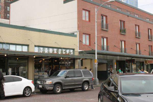 世界上第一家星巴克,就在派克市场的斜对面一家不起眼的小店里。若不是之前看过一些资料,谁也不知道我们眼前的这家小店就是鼎鼎大名的星巴克鼻祖店。在店内有一枚大大的金黄色的纪念币,上面刻着1971年的字眼,证明这家店是开于1971年。如今这家店依然门庭若市,排队买咖啡的人都排到了街上。走在西雅图的大街上,空气中弥漫着淡淡的咖啡味道,随处可见拿着星巴克咖啡杯子坐车或是走路的人。我点了一杯咖啡品尝,味道很浓烈,不加糖的时候真的很苦,我足足加了八包糖才有点甜味。我更喜欢喝星巴克的热巧克力。虽然现在已经是6月底,但是西雅图气温在15度左右,下雨的时候更冷,这时候点上一杯热巧克力,喝起来暖暖的,很舒服。在这里,让我们最不习惯的是,西雅图的人除了喝咖啡,就是喝冰水,在餐厅吃饭,侍应送上来的都是冰水,除非到了中餐厅特别要求才能喝到热水。