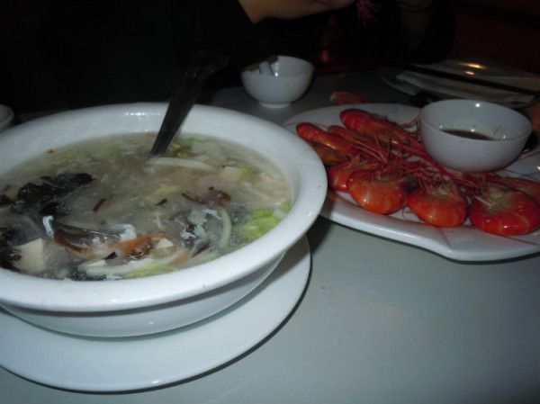 红虾居然比龙虾贵。鲜美的竹笙豆腐鲜菌汤,份量很足。
