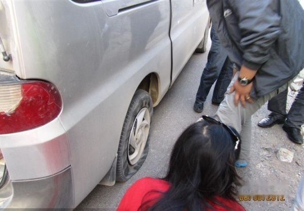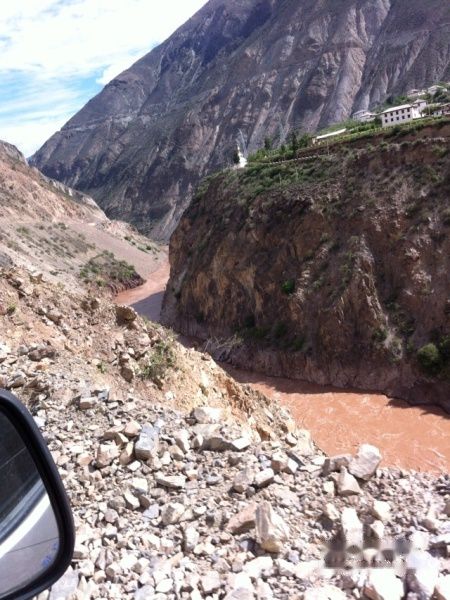 虽然风景很好,但是一路上的路况非常艰险,没有山路驾驶经验的自驾游压根就别想,在白马垭口到飞来寺的途中突然爆的一声,左后胎爆了,当时的情况非常险,庆幸师傅达瓦至从会开车就在这条路上跑,确保我们安全无恙,并迅速的换好了备用胎。