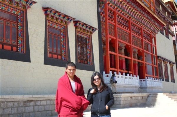 到香格里拉,次里直接带我们去了松赞林寺,第一次接触藏族寺庙,感觉挺神秘的,找个喇嘛合个影。要帅滴,其实我内心是非常虔诚的。