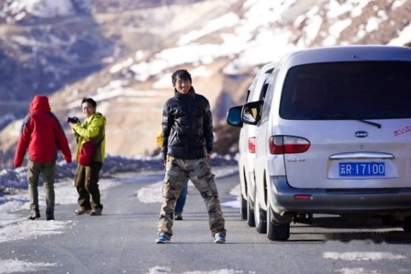 照片中没看到的人在车里吸氧,领队在帮我们拍照。