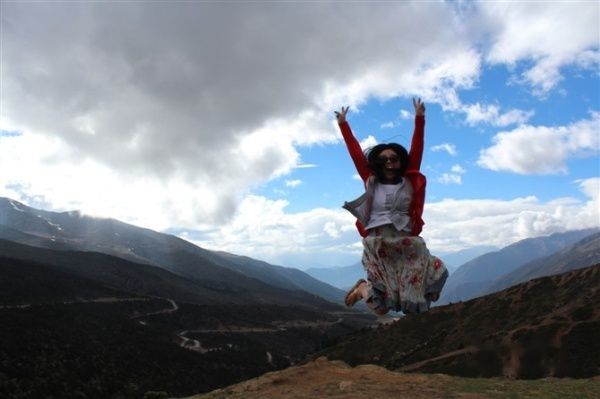 海拔4292米的白马垭口,非常冷,为了拍照,蹦了两下气喘吁吁;我个人感觉高原反应确实有,但是没想的那么可怕,我们七岁的小盆友一路过来情况良好。