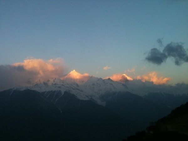 6月的夜晚在飞来寺的宾馆睡觉是要用电热毯的,领队嘱咐晚上睡觉窗户开个缝,不能洗澡,半夜醒了一次,面对着雪山太兴奋;