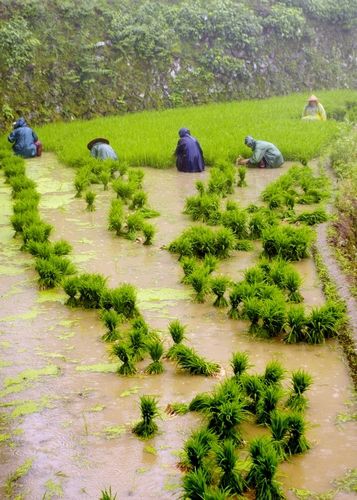 到了严池,先看千年树王--红豆杉,直径580CM。接着往下走,路过鱼塘,就能看见梯田了。我们算是一点点狗屎运,大概有个百米的能见度,还算看到了梯田,还有犁田的老农,拔秧苗的大妈。