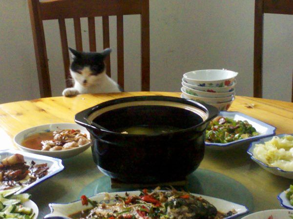 其实蛮可爱的。最最后只剩下我和它同桌吃饭了~好开心,好久没有遇见猫咪了。