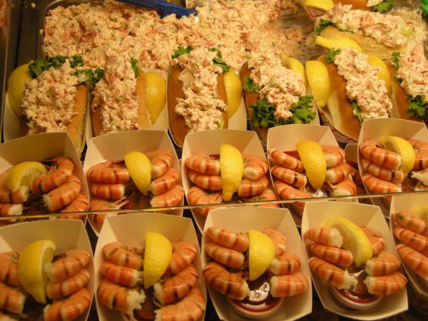 在这个热闹的大市场里有林林总总的商品,熙来攘往的人群,各式各样的食物让人胃口大开。尤其是著名的波士顿龙虾卷,虾肉醇香浓厚,我们买上一个,再配一杯摊位上卖得最火的鲜榨草莓水果混合果汁,解决一顿午餐。此外,还采购了蓝莓、蔓越莓、梨子等当地水果,坐在路边享用,直吃到双唇乌青,口腹之欲大饱。