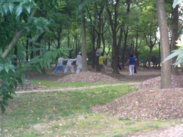 早上一进公园,就有一堆人在打太极,而且还看到年轻人跟着学,真的是很有感觉,要不是自己是来游玩的,也想过去,想当初我可是学校太极学最好的.!!!