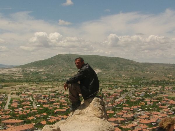 这个土耳其人像是乌其希萨尔的守护人,一直在山顶,走来走去。