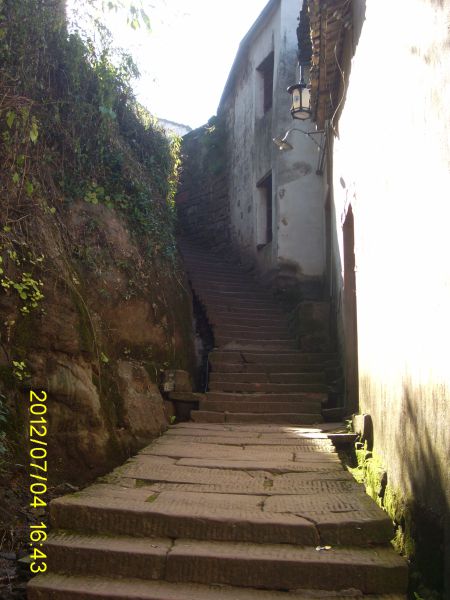 踏过梦真桥,仰望一天门,钻过二天门,踏进三天门,不容易啊!上上下下曲了拐弯的,终于来到了月华街!原来这是一个原生态的古村落的一条街!山上住宿的地方很多,都是农家乐,只有两家有空调的,一家是标准的按宾馆标准建造的,其余都是标准的居民家里。这里的原生态的确保护得蛮好!