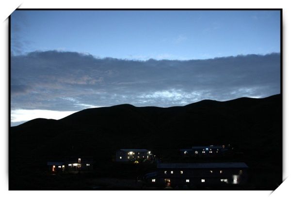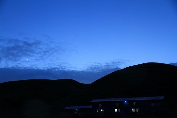 发云山庄的住所条件比金顶好的很多,至少房间了很少看到臭虫和潮虫,房间、被褥干爽洁净,洗澡的房间也多,没有潮湿的味道。 大伙分配好房间,就排队去洗刷刷了。可惜这时候外边依然是云山雾罩,就在晚饭前的十几分钟,天空奇迹般的晴了,而且还有一弯弦月挂在天边.....
