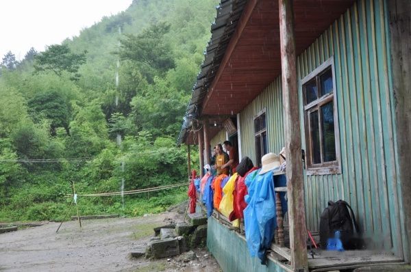 这让我一直很欣慰没有把我的LOWA穿来,不然一定心疼死了,但是应该带夏季冲锋衣、裤,这是此次的教训,晚上山上很冷的说哦!发云山庄的住宿可以不带睡袋的!