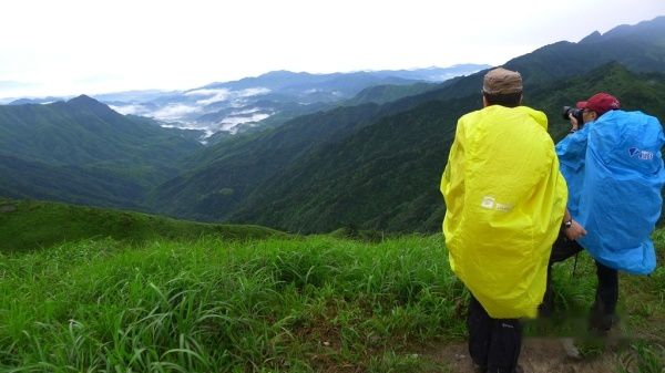 果不其然,到达东乡村的时候雨势渐大,换上了雨衣,带着既来之则安之的想法,我们一行19人冲进了上山的路,此时海拔是500米,时间是早上8点多。一路上行,依然是快速地拔高,穿山越岭。