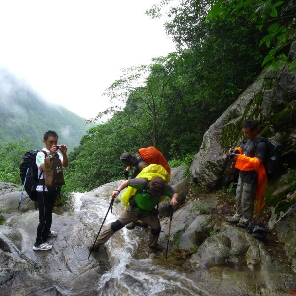 我们开始攀登的地方叫做黄狗冲-东乡村,请的向导依然是去年的小周师傅,但是却因为小周师傅还有一个比我们约的更早的北京的一个团队,就把我们交给了另一个据说也不错的向导(因此与羊狮幕失之交臂这是后话了)。出了火车站,雨一直下,一直下...到了长途汽车站时,已基本不下了,大伙都很兴奋。随着山路婉转拔高,雨又淅淅沥沥的落下了,自己心里也犯起嘀咕来,这样下法估计又看不到美景了。