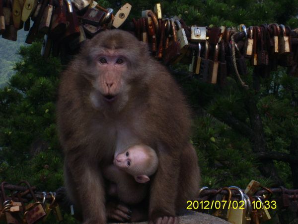 菩萨真的保佑我们了!居然让我们看到了平时很难得见到的野猴子!一个怀里还有个可爱的小猴崽子!![]()