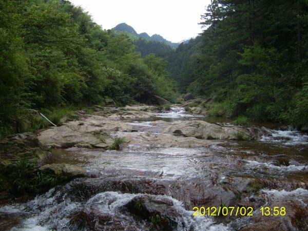 喔!哈哈!好冰啊!哈哈!爽!再试试!嗯!好舒服啊!顺着河床往前走了几步,真想把身体一起泡下去啊!可惜准备不足!算了,赶紧的捧一掬水洗洗脸,顺大便也洗了洗头,哇塞!顿时感到暑气全消,疲惫皆无,精神大振!真是太爽啦!