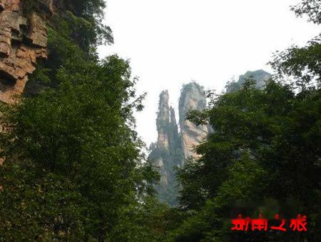 第二天早上,继续森林公园的旅行,做环保车来到了杨家界,在这边,去了乌龙寨,很多电视剧都是在这里取景点,在去乌龙寨的路上,有一个很狭窄的通道,只能容下一个人过去,而且还是要侧身的,胖子肯定是过不去的,家添就差点被卡在那里了哈!进寨后,来到了天波府,从这里看下午,有很多奇异的山峰,拔地而起这肯定,它们的形态奇特,有一处很像是四面城墙。下午就去到了天子山,去了贺龙公园,还有御笔峰,仙女散花等等。在这里,最遗憾的就是看不到云海,见不到云卷云舒那种美妙的景色,最后,下山了,乘坐世界第一梯百龙电梯下山,两分钟就到山下。到山下后,就去做观光小火车看了十里画廊,说实话,这里并不好看。看完,就坐车返回张家界市区了。这是我们在张家界最后的一个晚上了。回到客栈,告别导游陈彬,有去张家界需要请导游的,直接找他:15974447800,开始了4+2+1相处的最后一晚,休息一阵时间,这段时间里,听了麦哥和主丹的经历分享,感觉很不错,特别是阿主丹的经历,虽然很辛苦,但是依然完全让人羡慕不已,听完他们的话,自己不禁感慨,一个人,来到外面历练所得到的东西,是书本上永远无法获得的!八点左右,4+2+1一起到市区吃饭逛街,吃KFC,虽然在吃KFC时,发生一点不愉快的事,不过,出门在外,又是人家地盘,忍忍算了吧!值得一提的是,超炯来到这里,胃口终于变好了,之前的那些饭菜(辣,腊),可真够折磨他了。吃完就逛街购物咯,买特产。后来我们逛回去小吃街,去补吃了之前没吃的烧烤。还有,本来打桌球的机会又有了,但是,但是,已经快十一点了,而且只有我和阿主丹想打,其他的都归心似箭,就这样,又没能打成了,这也注定是一个遗憾了。