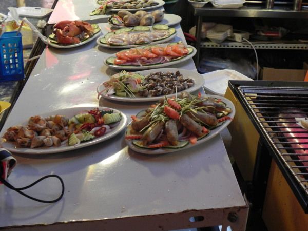素材价目表~~模糊了,因为前面6米完全挤不进去,人很多。。。。我们4个人点了一个180元的7道菜。吃的很满足,也吃不完。。。