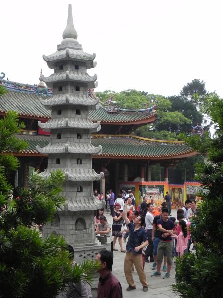 殿前有一个许愿塔,很多游客在抛银币许愿~~