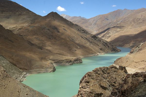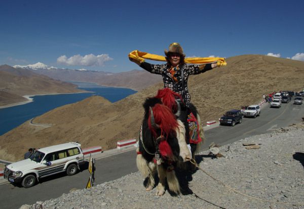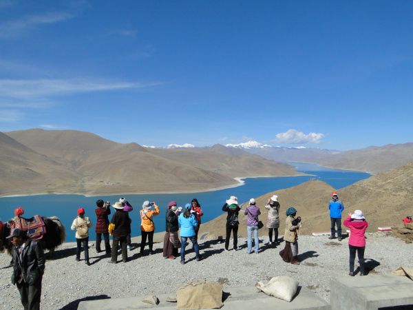 过了冈巴拉山口不久,司机告诉我们前面就是羊湖了,进了这条路就必须买羊湖的门票了,否则就不能过去。