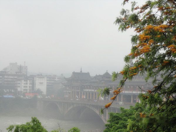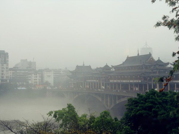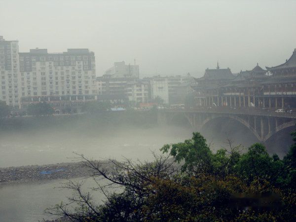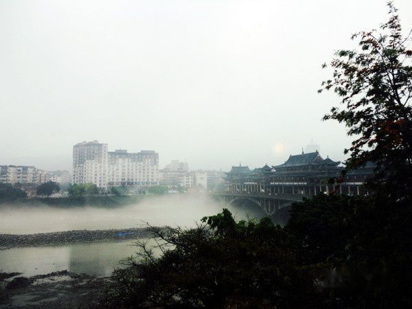 上个月的今天,由成都陪家里的亲戚回家乡雅安,一路上小雨霏霏,薄雾轻绕,到了住的地方,站在窗前放眼望去,江面上腾起茫茫白雾,江中廊桥和两岸的建筑时隐时现,宠罩在薄雾中,恍如人间仙境一般,整个城在山中,人在画中的人间仙境,美不胜收