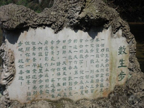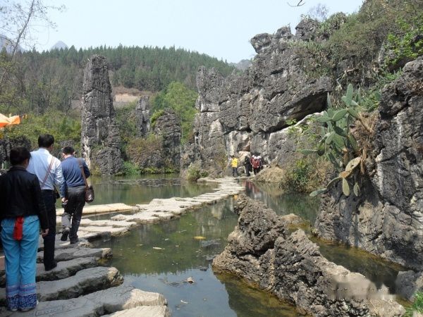 天星桥景区的人也不多。有很长的一段路是在水中的石墩上步行,石墩上刻有月,日。共有365块。水面上有石林,千姿百态,很是好看。后面的路就是 沿着河道前行,景致 更不错。但是,路途确实太长 了 ,需要近3个小时,体力不是很好的要量力而行。 在行程一半时可以出景区,但是事前要与司机讲好,一定在进入景区前要问清楚路线,在什么地方出景区。