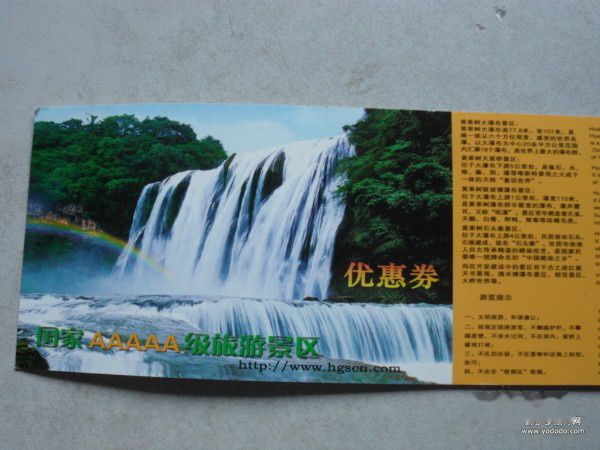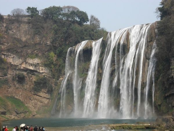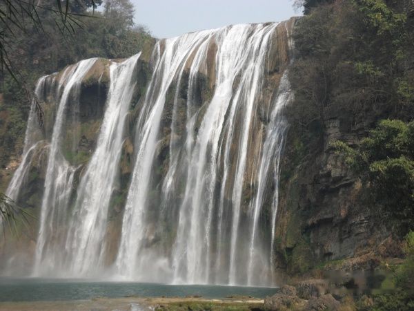 第一天:乘k740从昆明出发上午8.20到达安顺。出站后,靠右前行几十米远有一处铁路招待所,看了一下条件基本还可以,两床,有卫生间,电视。确定住下来,讲价60元一天。由于是一楼,被单有点潮湿,好在每张床都有电热毯,可以烘烤一下。放好行李直奔汽车站。由于在网上做了功课,知道汽车站在火车出站对着的中南大道上,大约十多分钟就到了。汽车站在大道的左边,我们在对面的小摊上吃了豆花米粉,豆浆,小饼后,买了9.30到黄果树的汽车票(15元),立即上车直奔黄果树。大约1.5小时到达黄果树景区接待处。下车后有位热心人引领我们来到售票大厅,告诉:学生,60——69岁的老人半票,凭证件在优惠窗口办理优惠手续,在售票窗口购买半票。购票后,这位热心人问是坐他的出租车还是坐景区观光车,价格都是50元,坐完后付钱。他这样热情当然是坐他的出租车。不一会儿就到了第一个景区——陡坡塘,瀑布不大,游人不多,30——40分钟游完。出了陡坡塘出租车早已等候在外,上车直奔第二个景区——天星桥。约10分钟到达。
