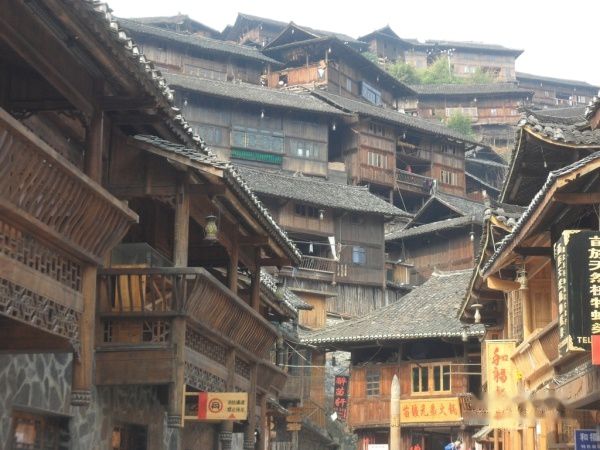 第二天:目的地西江苗寨。早上6.50退房,在招待所前门10米处早餐,米粉。由于昨天晚上买好了到凯里的火车票(k740安顺——凯里44元,其中一张无座)饭后进入候车厅。k740又晚点40分钟,近9点才到安顺,于12.50到凯里。出站口30米处就是1路公交车起点,到汽车总站下车再返回走几十米(或者到洗马河站下再向前走几十米)就是到西江的汽车站。买好了13.40到西江的车票(每人13.5元)立即上车,车准时出发。到西江的班车每小时一班。大约1.5小时到达苗寨售票处。门票100元。学生,60-69的老人半票50元。进入景区的游人很少,苗寨的主体在对面的山上中间有一条小河。没有人指引道路也没有路牌,路标等文字说明,只有自己找路。路很陡且长,在山坡上七拐八绕才到达山下的公路上。在街上转了一段路,全是卖旅游商品的,没有值得看的东西,简直对不起100的门票,太坑人了。照了两张照片,乘16.10的班车返回。晚上住在汽车总站对面的师专招待所,两床,卫生间,电视一间60元 ,比安顺的强。