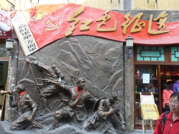 第五天;目的地遵义。早乘k872次列车7.52分开往遵义。约中午12点才到达。由于在火车上已经打听好了到遵义会议会址乘1路公交车,出站在右边的行李寄放处寄放好行李后,在出站口不远的地方上了1路公交。在宾馆站下车,往回走500米,就到了长征遵义会议纪念馆。凭身份证领取门票进入。纪念馆有会议会址,放大的毛泽东长征诗手书,红军长征纪念馆,参观了约2个小时。游览了不远处的红军街,街上有毛泽东旧居等。红军街当然基本上是商店。步行前往凤凰山公园,然后前往红花岗乘1路返回火车站。乘21.19分开的k486次列车到成都东