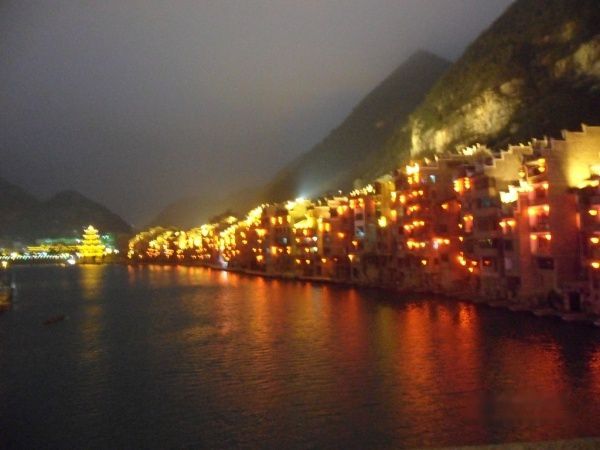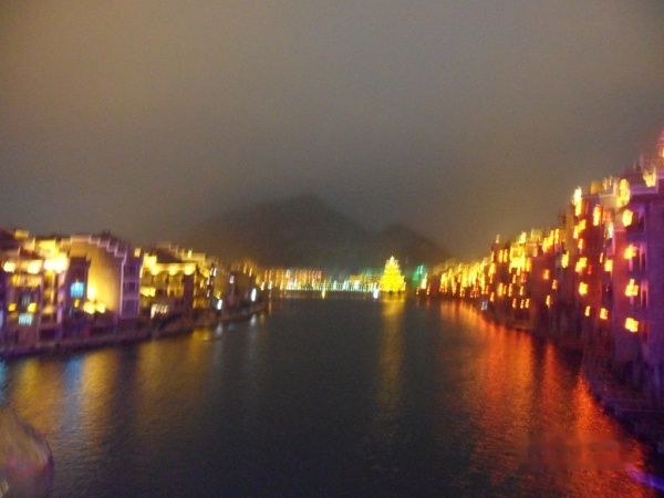 镇远城建在舞阳河的两岸,呈狭长状,面积不大,人口不多,据说只有5万。街道不宽,车辆不多,没有一般城市的喧哗和张扬,显得有些宁静和古朴。中午12点街坊们听见垃圾车的音乐声,纷纷提着各种各样装上垃圾的东西前来倒垃圾,都让人感到好奇,仿佛回到了好多年前。晚上的舞阳河被打扮得花枝招展,美不胜收,让人流连忘返,感觉进入了人间仙境一般。