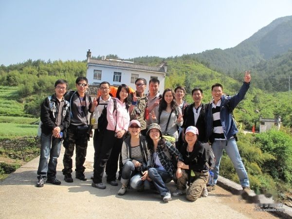 5/2 八点多起床,客栈准备了简单的早餐,粥、小菜、面等。等我们吃好整理好东西,上海的Ben他们也到达绩溪了,约定了见面地点,我们这边七个人背着大包浩浩荡荡的向汽车站走去。进入安徽的地界,建筑果然变得有些不同,一副古色古香的徽派建筑,据说是为了老胡上次来时特意建造的。到达车站后,此次行走团队的十三人总算是到齐了。简短的自我介绍后,上车向古道出发了,小巴车把我们一直送到古道饭店门口,省了大概有一小时的马路暴走吧,但也错过了目睹古道入口的标志。