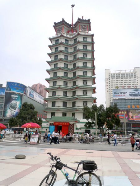 11:15分~经过艰难的10公里市区骑行,来到了郑州的地标~二七纪念塔下。正赶上星期天,广场上人忒多,待了一会就骑车 往回赶。
