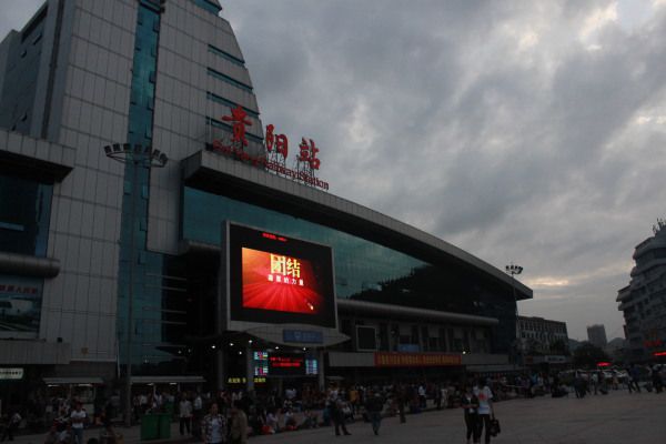 乘坐的列车穿梭于贵州的崇山峻岭中,铁道的两边,常常蜿蜒着长长的高速公路,看到这样景色,我知道贵阳渐渐地近了。经过近25个小时的晃当,5月25日晚7点多到达贵阳。一下火车就立刻感到浓浓的湿气,“天无三日晴,地无三尺平”这大概就是对贵阳的描述吧!