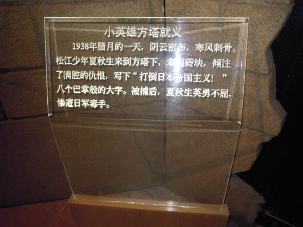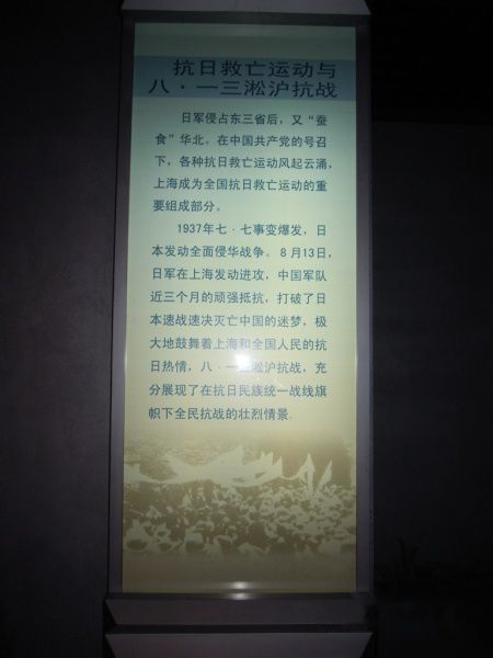 截止到2012年3月4日8:00,我在多多上始终没能搜索到有关上海淞沪抗战纪念馆的照片和介绍,这不能不说太遗憾了。如此重要的一个红色旅游景点竟然被忽视,只能说明的的确确有的人已经把淞沪战役给遗忘了,忘记了当年耻辱的历史!
