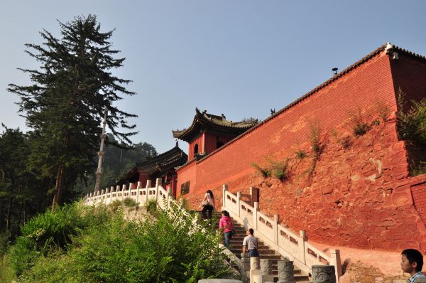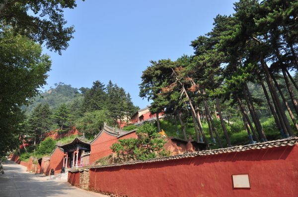 一早起来,天气不错,暑日的五台,清早还是有些凉意。早餐时,与同伴商定了第一站先去镇海寺。别处的早晨可能是安静的、井井有条的,五台的早晨却是喧闹的,带团的导游挥着小旗呼喊着跟他走,后面跟着一群表情各异的游客,游方的僧尼神色悠闲的穿梭其中,这两拨人里夹杂着似我们这类自助的游客,衣着、口音各异,在各个站牌下等待自己目的地的班车,好不热闹。五台的班车没有先来后到、先下后上的原则,凭力大、凭钻缝,错过一辆车之后,望着越来越多的候车人,只要只秉承能上车一个原则,终于挤上了一辆区间车,到达这天的第一个目的地:镇海寺。