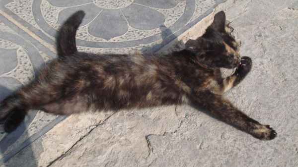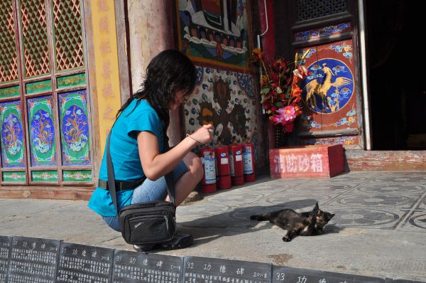 在寺里悠闲自在晒太阳的猫,如此惬意、自在,让人羡慕的想做猫