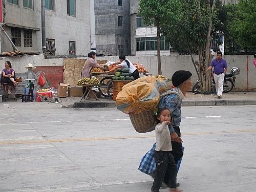 碰上了一个年轻的人骑个摩托车带个小女孩。一招手,停下了。年轻人很好说话,不要钱带我们一个出去。我先上车出去了,到了路口下了车,千恩万谢硬塞给小女孩5元钱买糖吃(包在LG拿着,衣服兜里只有这5元钱,真难为情)。一会LG也出来了,他给了10元。这比小巴便宜了一半还多哈!